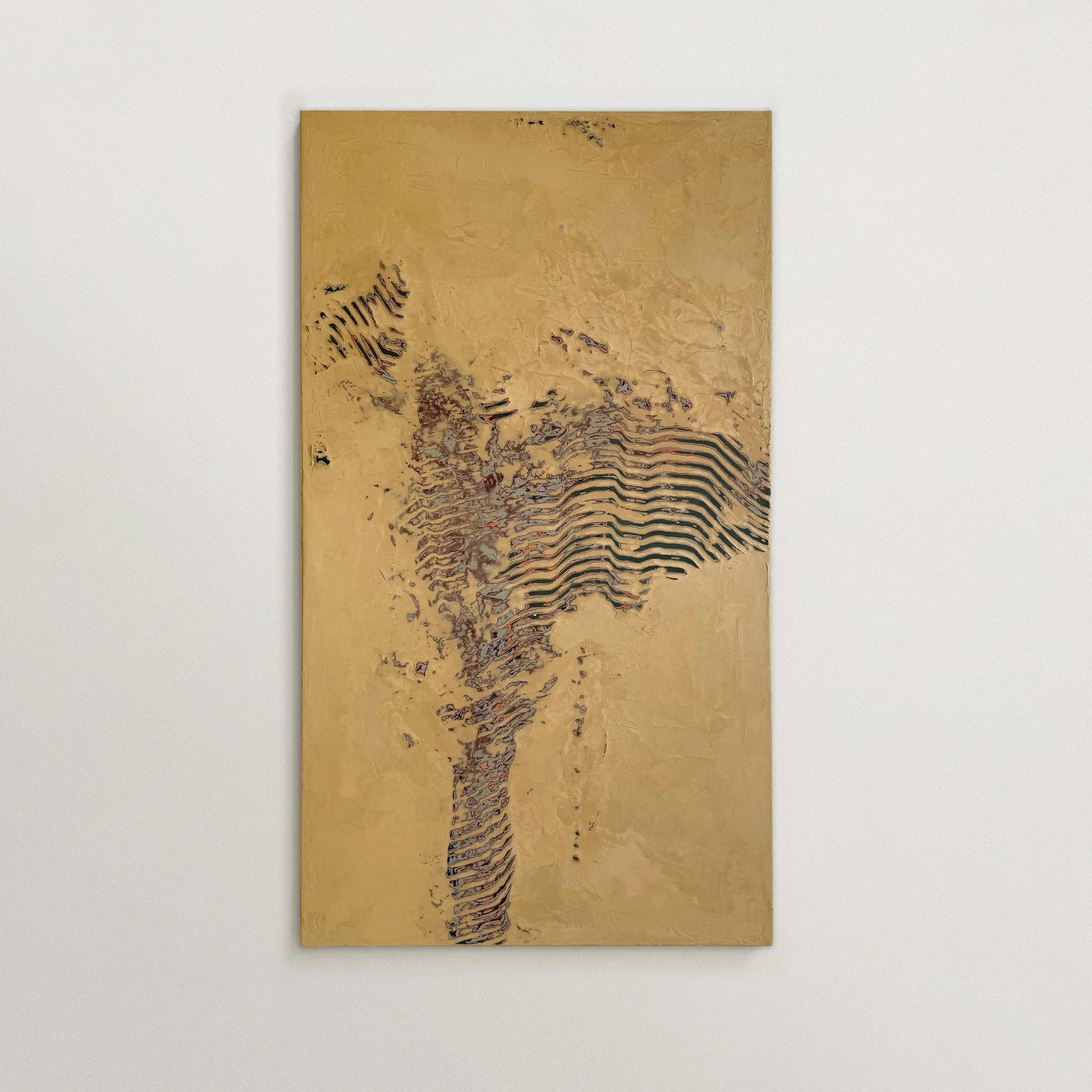 Excavations explores the sculptural possibilities of paint. Each work is built up in thick, textured layers, then scraped, carved, and sanded back to reveal what's hidden beneath. Inspired by geological formations and extraction sites, the process feels closer to sculpture than painting, with the focus on the space perpendicular to the canvas rather than across it. As with much of my practice, the work is rooted in material experimentation and the outcomes are never fully planned. The colour interactions in particular have been a surprise, pulling me toward combinations I wouldn't normally reach for. Complete series available on request.